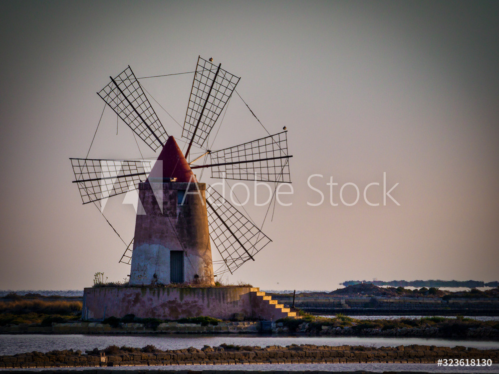 The sea salt of Trapini is produced by natural evaporation. The windmills were used to drive water pumps to pump the sea water into the higher evaporation basins.
